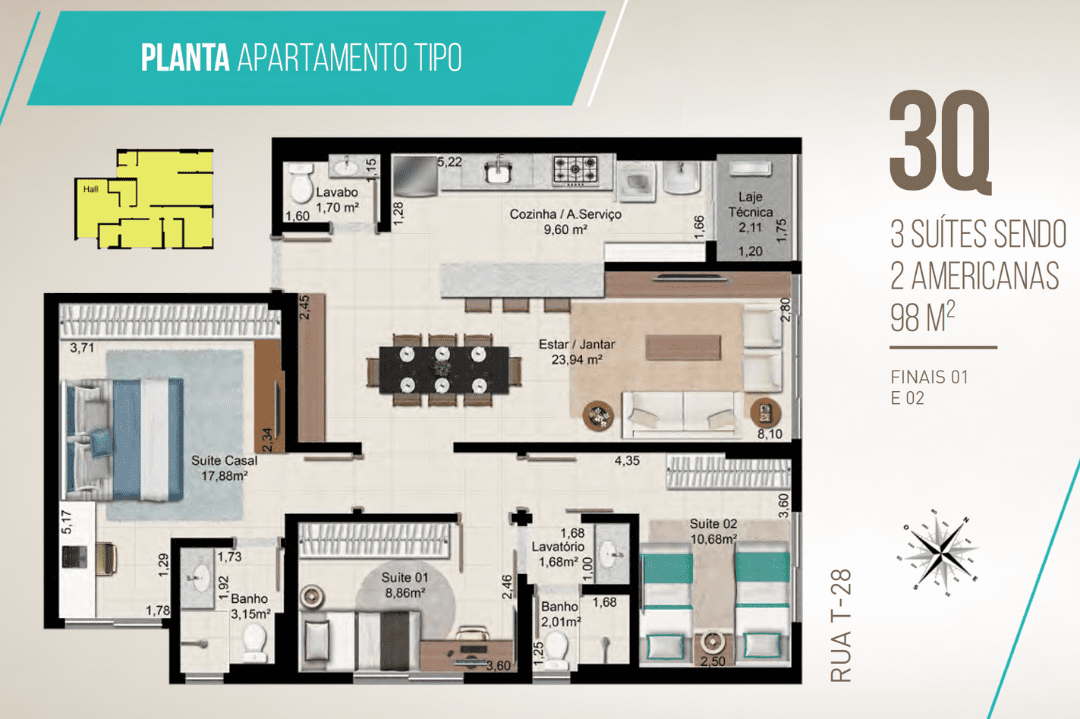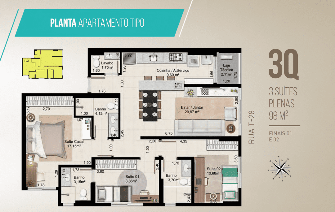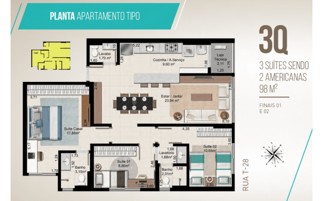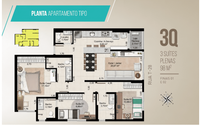 3 Suítes - 98 m²