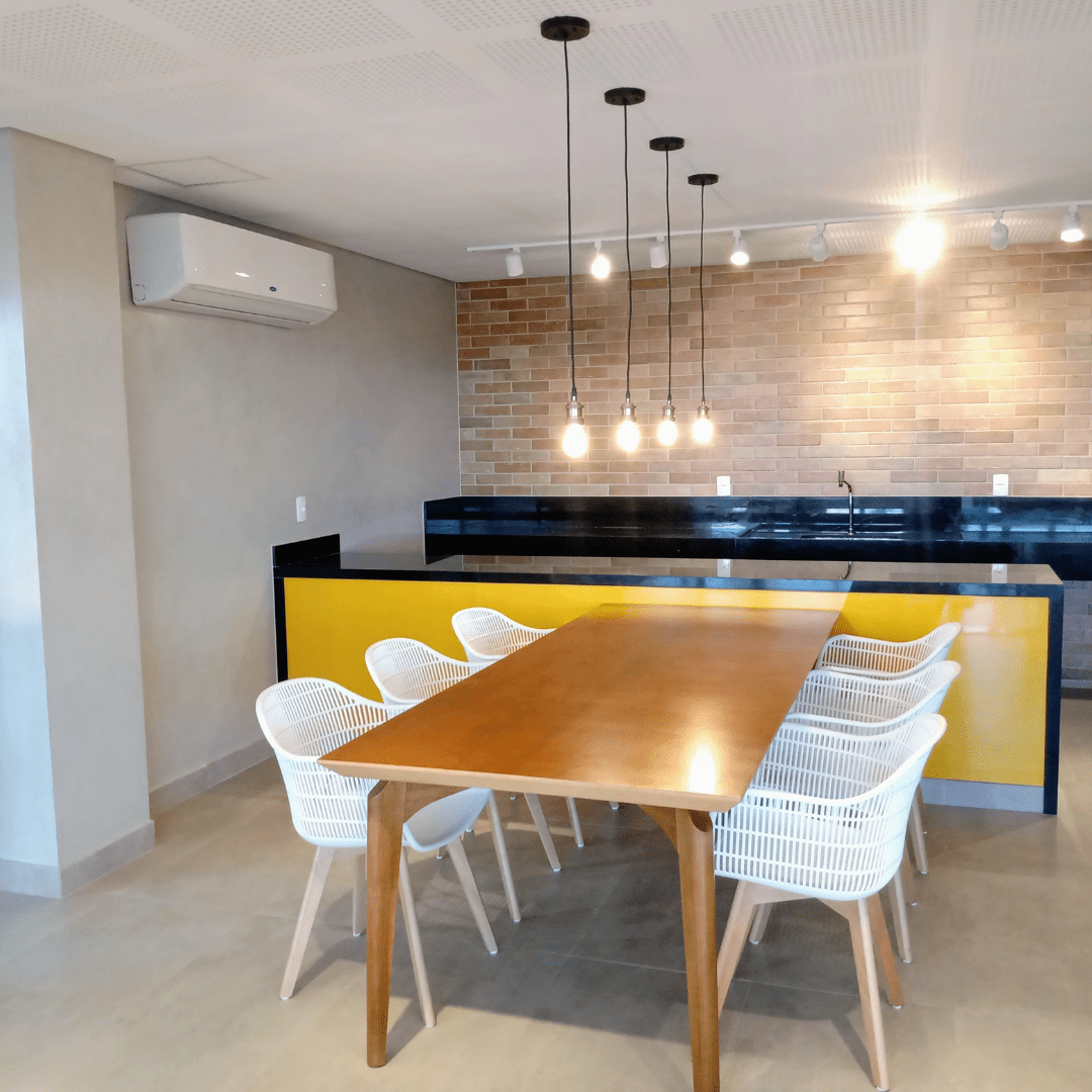 Salão de festas, churrasqueira, copa e espaço gourmet
