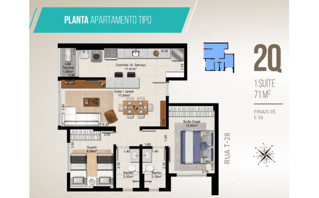 2 Quartos - 71 m²